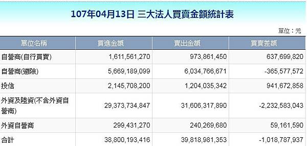 現貨三大法人籌碼